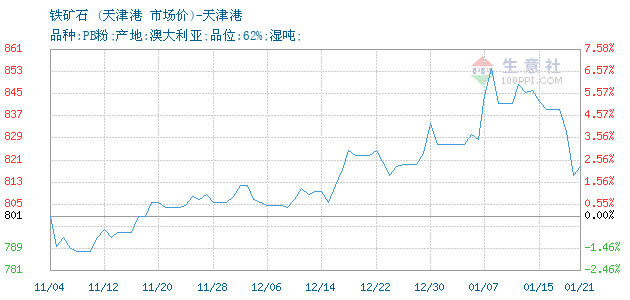 品种:PB粉;产地:澳大利亚;品位:62%;湿吨;