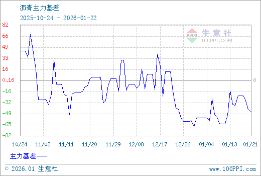 1、从2025-10-24 至 2026-01-22期间,石油沥青主力基差最大值为69.00,最小值为-68.67,平均值为-15.85。2、主力基差 = 现货价格 - 主力期货价格 = 主现期差。
