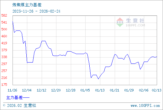 1、从2025-11-26 至 2026-02-24期间,焦煤主力基差最大值为548.25,最小值为209.75,平均值为345.77。2、主力基差 = 现货价格 - 主力期货价格 = 主现期差。