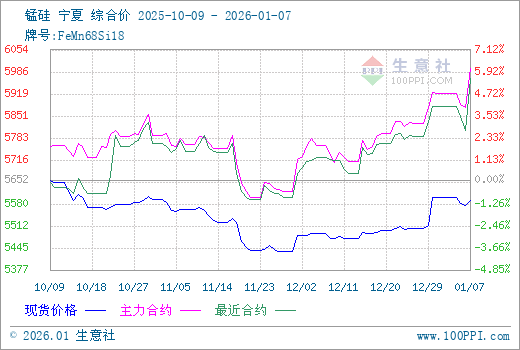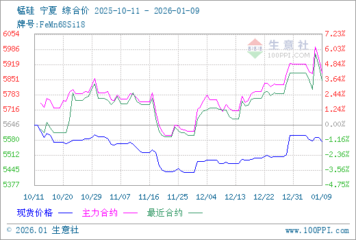 1月16日生意社锰硅基准价为5584.00元/吨
