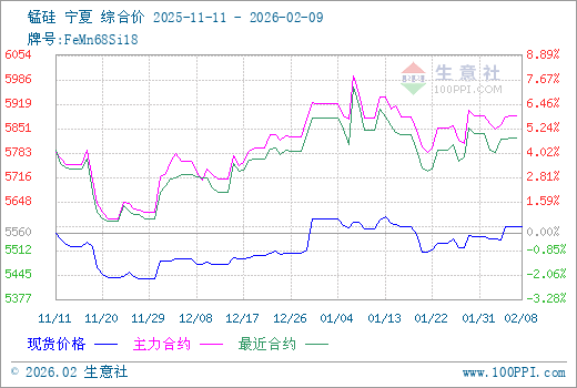 1、从2025-11-11 至 2026-02-09期间,锰硅主力基差最大值为-154.00,最小值为-406.00,平均值为-278.81。2、主力基差 = 现货价格 - 主力期货价格 = 主现期差。