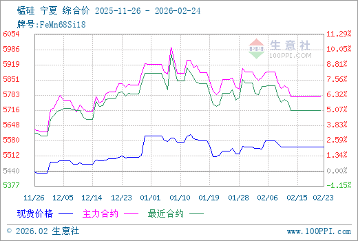 2月16日生意社锰硅基准价为5552.00元/吨