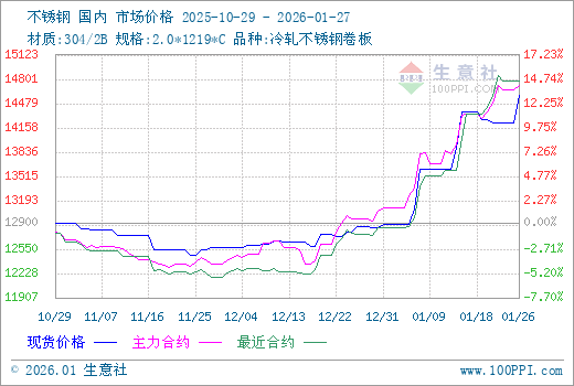1、从2025-10-29 至 2026-01-27期间,不锈钢主力基差最大值为323.33,最小值为-501.67,平均值为28.15。2、主力基差 = 现货价格 - 主力期货价格 = 主现期差。