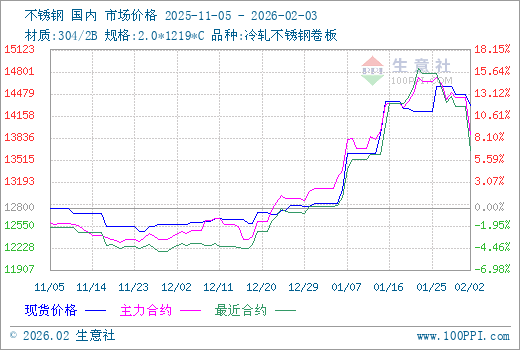 2月3日生意社不锈钢基准价为14306.67元/吨