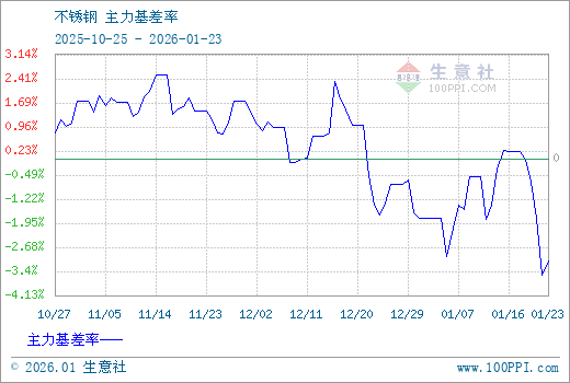1、从2025-10-25 至 2026-01-23期间,不锈钢主力基差最大值为323.33,最小值为-501.67,平均值为35.16。2、主力基差 = 现货价格 - 主力期货价格 = 主现期差。