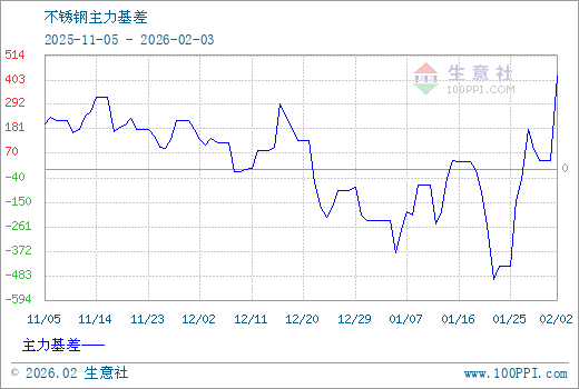 1、从2025-11-05 至 2026-02-03期间,不锈钢主力基差最大值为651.67,最小值为-501.67,平均值为35.45。2、主力基差 = 现货价格 - 主力期货价格 = 主现期差。