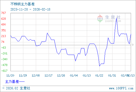 1、从2025-11-20 至 2026-02-18期间,不锈钢主力基差最大值为651.67,最小值为-501.67,平均值为25.86。2、主力基差 = 现货价格 - 主力期货价格 = 主现期差。