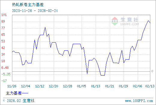 1、从2025-11-26 至 2026-02-24期间,热轧卷板主力基差最大值为91.33,最小值为-7.33,平均值为36.90。2、主力基差 = 现货价格 - 主力期货价格 = 主现期差。