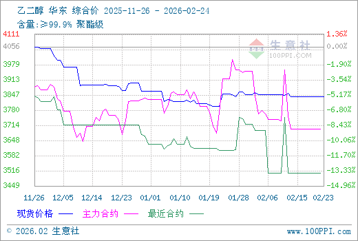 乙二醇商品报价动态(2026-02-23)