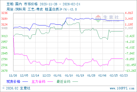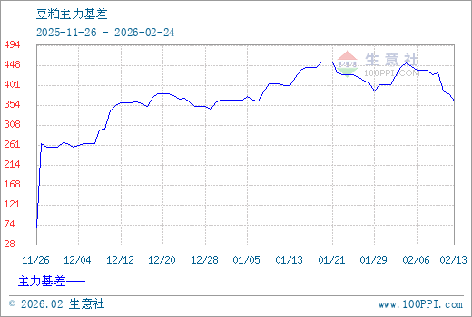 1、从2025-11-26 至 2026-02-24期间,豆粕主力基差最大值为456.00,最小值为67.00,平均值为369.98。2、主力基差 = 现货价格 - 主力期货价格 = 主现期差。