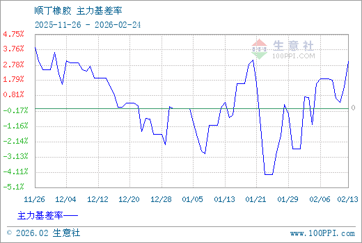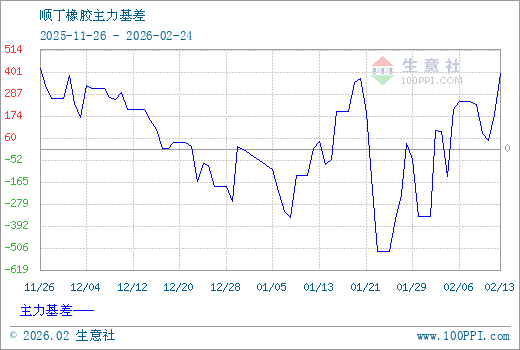 1、从2025-11-26 至 2026-02-24期间,丁二烯橡胶主力基差最大值为420.00,最小值为-525.00,平均值为53.75。2、主力基差 = 现货价格 - 主力期货价格 = 主现期差。