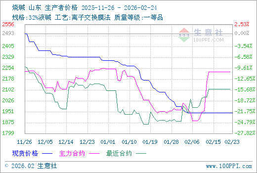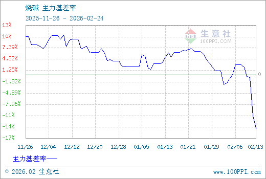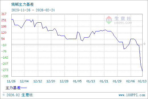 1、从2025-11-26 至 2026-02-24期间,烧碱主力基差最大值为262.75,最小值为-284.25,平均值为106.61。2、主力基差 = 现货价格 - 主力期货价格 = 主现期差。