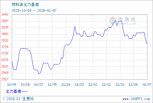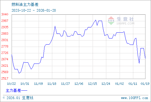 1、从2025-10-22 至 2026-01-20期间,燃料油主力基差最大值为2996.50,最小值为2561.00,平均值为2804.93。2、主力基差 = 现货价格 - 主力期货价格 = 主现期差。