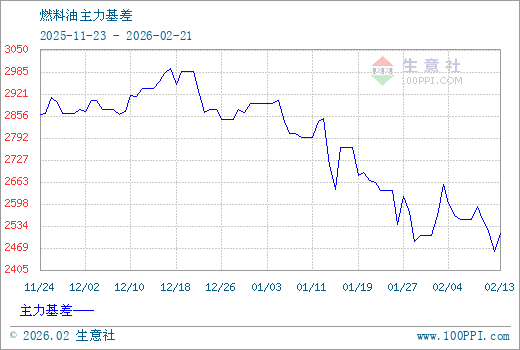 1、从2025-11-23 至 2026-02-21期间,燃料油主力基差最大值为2996.50,最小值为2459.00,平均值为2772.83。2、主力基差 = 现货价格 - 主力期货价格 = 主现期差。