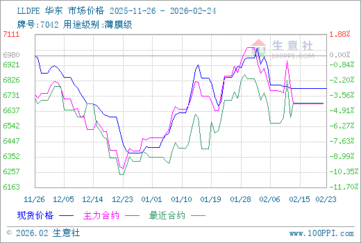 2月16日生意社LLDPE基准价为6775.00元/吨