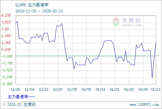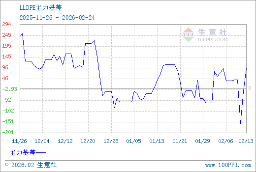 1、从2025-11-26 至 2026-02-24期间,聚乙烯主力基差最大值为253.34,最小值为-160.00,平均值为56.35。2、主力基差 = 现货价格 - 主力期货价格 = 主现期差。