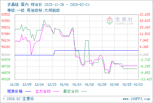2月18日生意社多晶硅基准价为53333.33元/吨