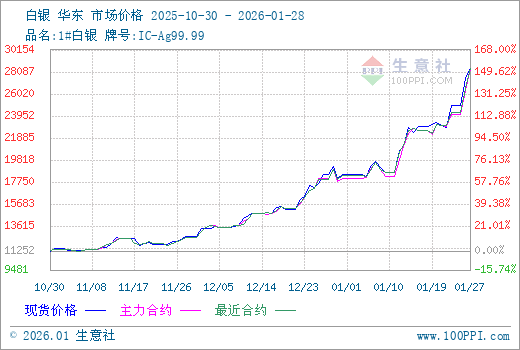 1月28日生意社白银基准价为28432.00元/千克