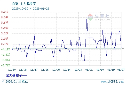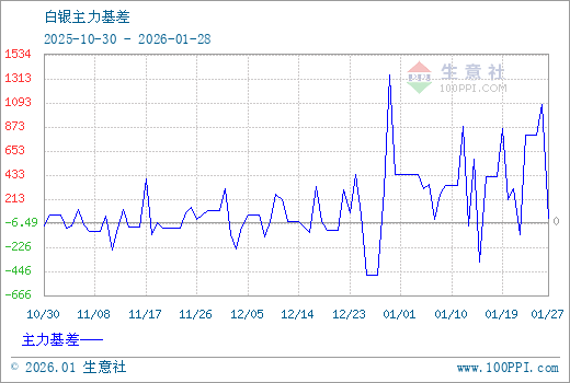 1、从2025-10-30 至 2026-01-28期间,白银主力基差最大值为1350.67,最小值为-483.33,平均值为150.91。2、主力基差 = 现货价格 - 主力期货价格 = 主现期差。