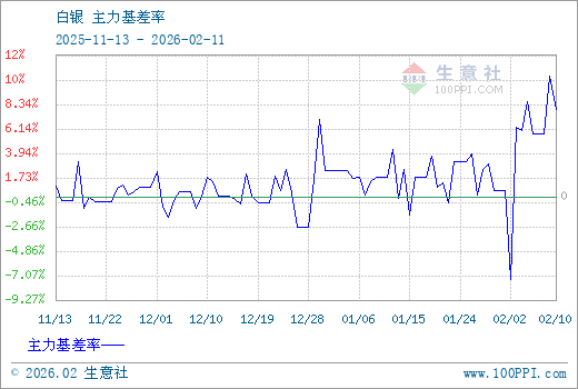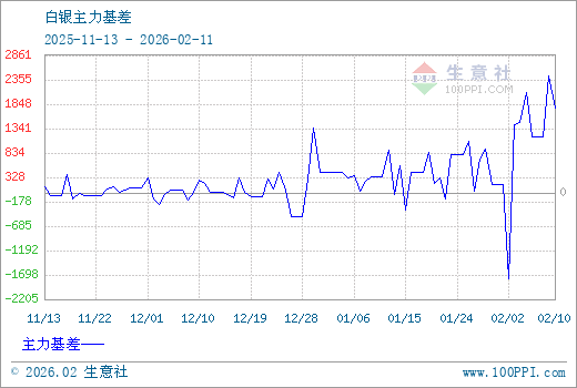1、从2025-11-13 至 2026-02-11期间,白银主力基差最大值为2439.67,最小值为-1783.33,平均值为322.50。2、主力基差 = 现货价格 - 主力期货价格 = 主现期差。