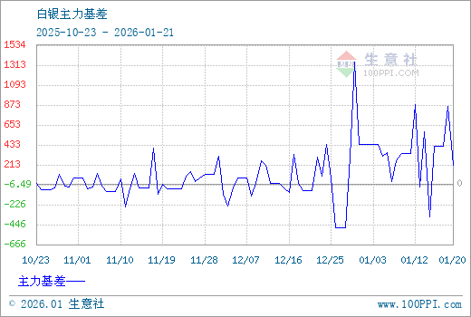1、从2025-10-23 至 2026-01-21期间,白银主力基差最大值为1350.67,最小值为-483.33,平均值为116.49。2、主力基差 = 现货价格 - 主力期货价格 = 主现期差。