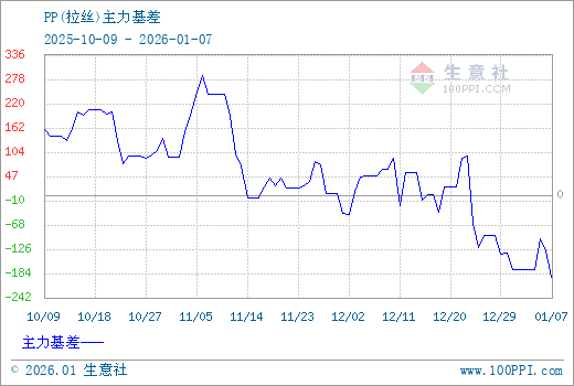 1、从2025-10-22 至 2026-01-20期间,聚丙烯主力基差最大值为288.00,最小值为-194.00,平均值为27.85。2、主力基差 = 现货价格 - 主力期货价格 = 主现期差。