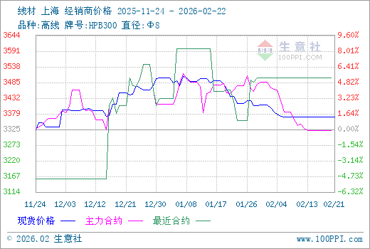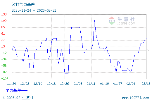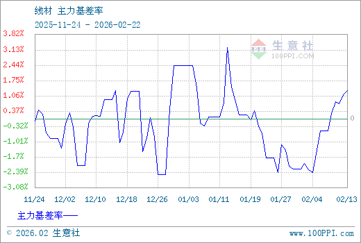 1、从2025-11-24 至 2026-02-22期间,线材主力基差最大值为113.50,最小值为-87.00,平均值为-6.05。2、主力基差 = 现货价格 - 主力期货价格 = 主现期差。