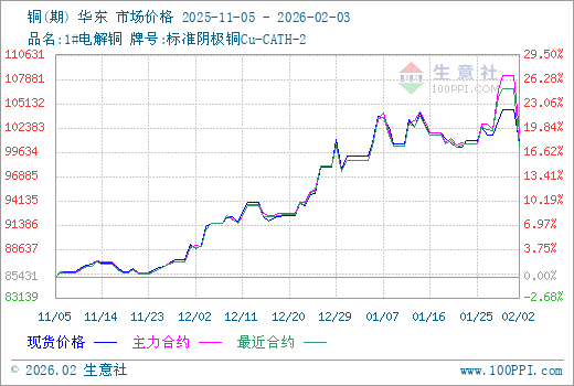 2月3日生意社铜基准价为100853.33元/吨
