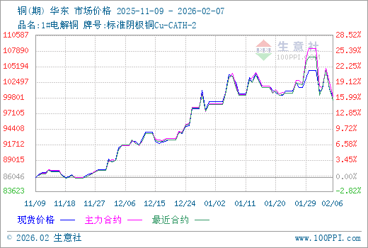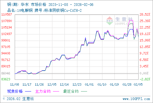 2月6日生意社铜基准价为101288.33元/吨