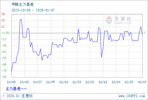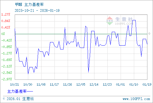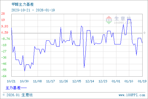1、从2025-10-21 至 2026-01-19期间,甲醇MA主力基差最大值为20.83,最小值为-57.00,平均值为-16.67。2、主力基差 = 现货价格 - 主力期货价格 = 主现期差。