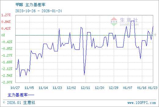 1、从2025-10-26 至 2026-01-24期间,甲醇MA主力基差最大值为20.83,最小值为-57.00,平均值为-15.09。2、主力基差 = 现货价格 - 主力期货价格 = 主现期差。
