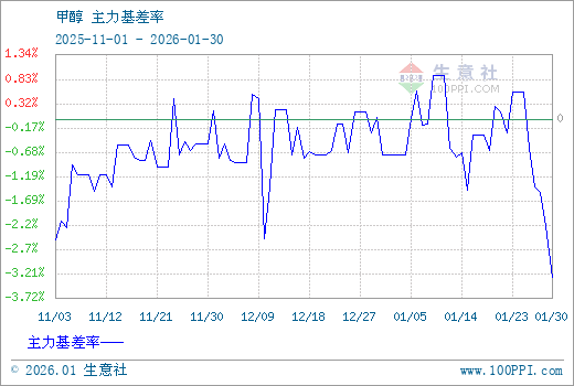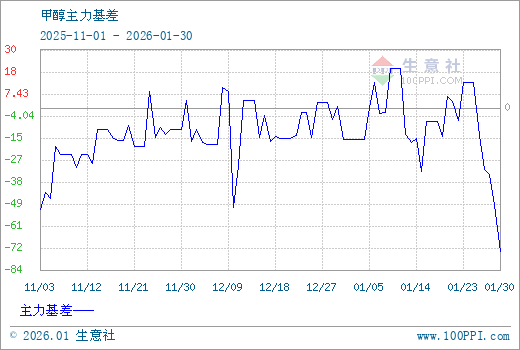 1、从2025-11-01 至 2026-01-30期间,甲醇MA主力基差最大值为20.83,最小值为-74.83,平均值为-14.69。2、主力基差 = 现货价格 - 主力期货价格 = 主现期差。