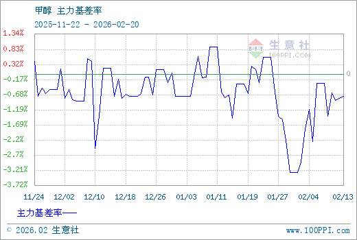 1、从2025-11-22 至 2026-02-20期间,甲醇MA主力基差最大值为20.83,最小值为-74.83,平均值为-14.28。2、主力基差 = 现货价格 - 主力期货价格 = 主现期差。