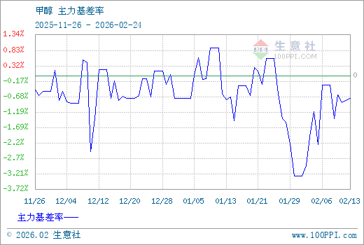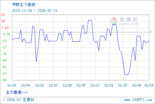 1、从2025-11-26 至 2026-02-24期间,甲醇MA主力基差最大值为20.83,最小值为-74.83,平均值为-14.68。