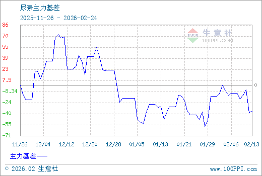 1、从2025-11-26 至 2026-02-24期间,尿素主力基差最大值为73.50,最小值为-58.50,平均值为-4.05。2、主力基差 = 现货价格 - 主力期货价格 = 主现期差。