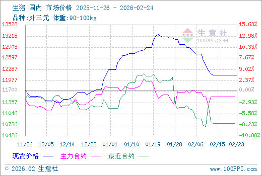 1、从2025-11-26 至 2026-02-24期间,生猪主力基差最大值为1855.00,最小值为-55.00,平均值为730.71。2、主力基差 = 现货价格 - 主力期货价格 = 主现期差。