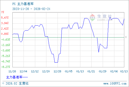 1、从2025-11-26 至 2026-02-24期间,PX主力基差最大值为438.00,最小值为-490.00,平均值为112.96。2、主力基差 = 现货价格 - 主力期货价格 = 主现期差。