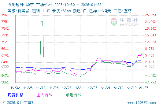 1月28日生意社涤纶短纤基准价为6651.95元/吨