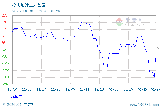 1、从2025-10-30 至 2026-01-28期间,涤纶短纤主力基差最大值为186.23,最小值为-208.04,平均值为50.14。2、主力基差 = 现货价格 - 主力期货价格 = 主现期差。