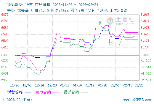 2月16日生意社涤纶短纤基准价为6557.59元/吨