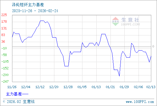1、从2025-11-26 至 2026-02-24期间,涤纶短纤主力基差最大值为186.23,最小值为-208.04,平均值为14.78。2、主力基差 = 现货价格 - 主力期货价格 = 主现期差。